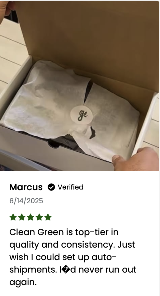 Clean Green products are NOT synthetic or artificial. You're getting real prodcuts with premium genetics and potency, delivered through a completely legal pathway under federal law.